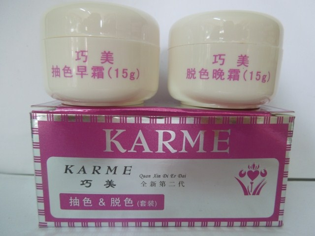 早上用抽色霜,晚上用脱色霜,敏感皮肤请于手臂内则或耳后试用24小时,无不适方可使用。
