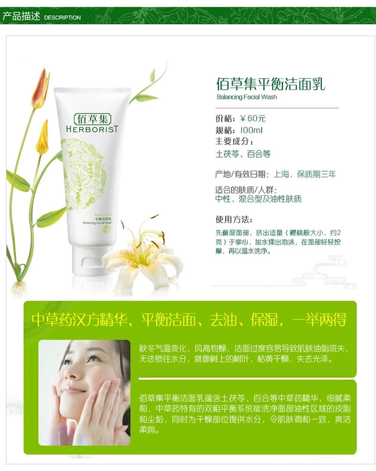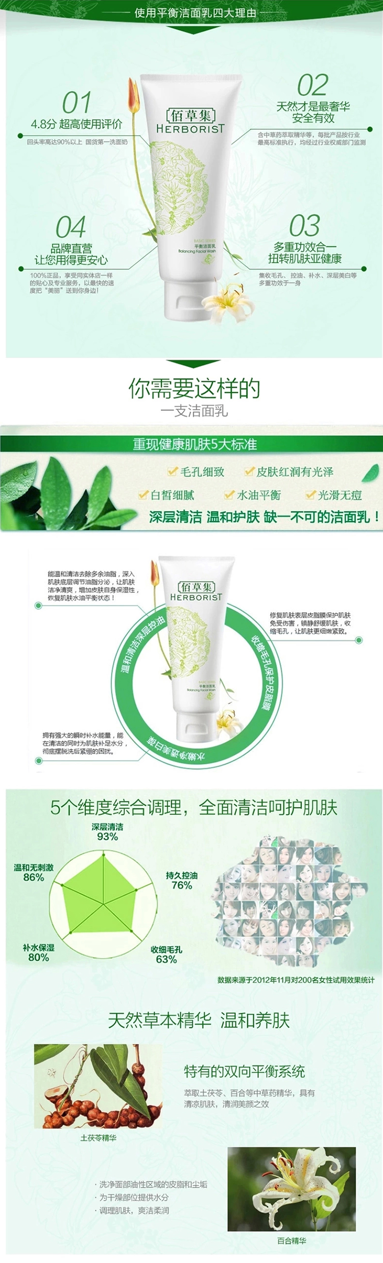 佰草集洗面奶女平衡洁面乳深层清洁补水控油收缩毛孔