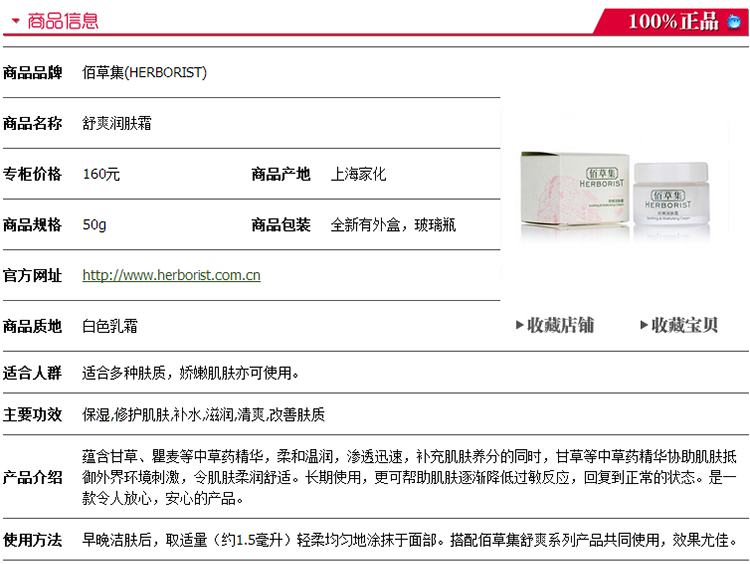 佰草集舒爽润肤霜50g补水保湿滋润面霜调节肤质滋养肌肤