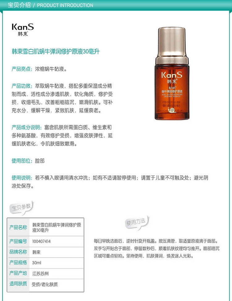 韩束雪白肌蜗牛弹润修护原液30毫升