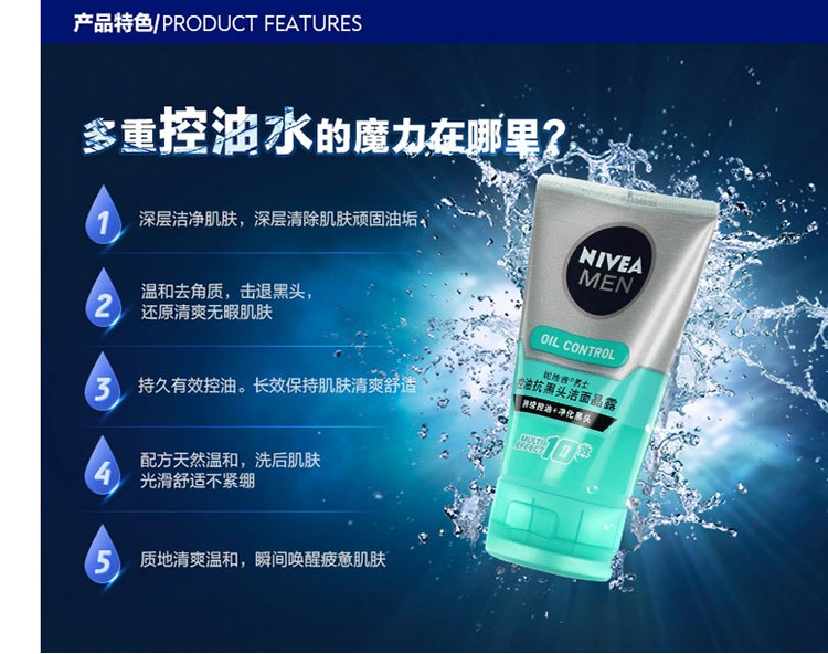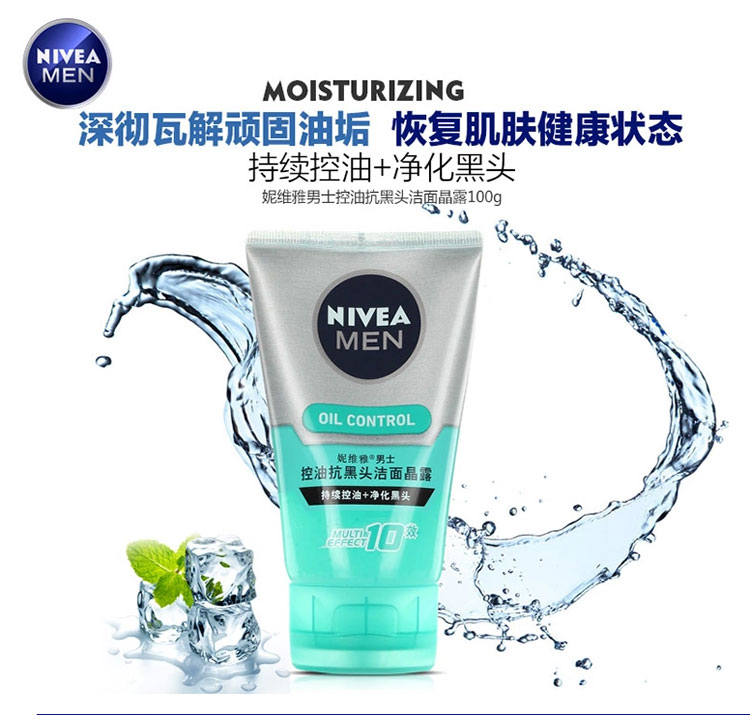 妮维雅 洗面奶 男士控油抗黑头洁面晶露100g保湿护肤