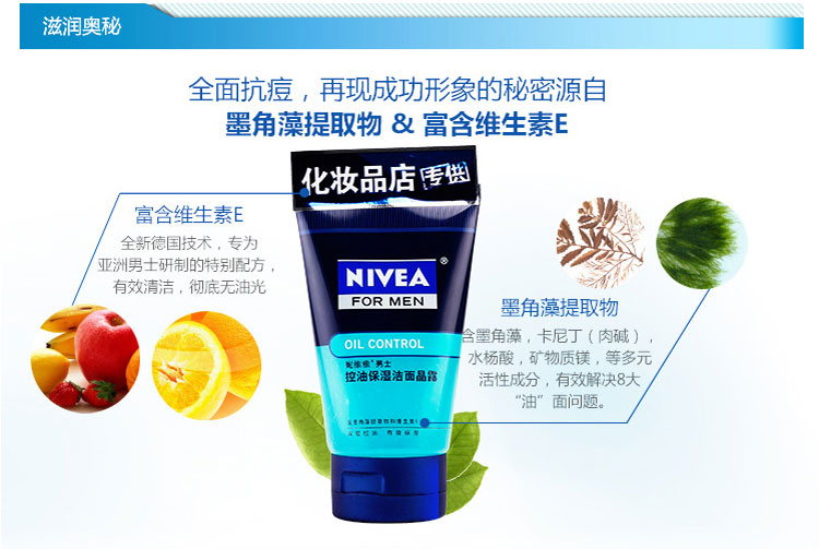 妮维雅 男士 控油保湿洁面晶露100ml洗面奶