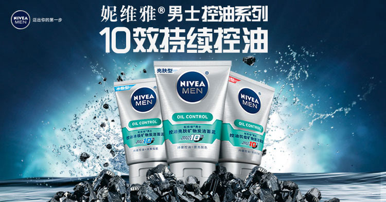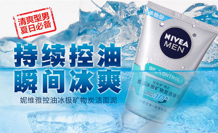 妮维雅男士控油冰极矿物炭洁面泥100G送洁面50g