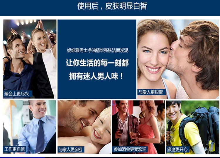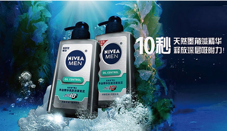 妮维雅 洗面奶男士净油精华亮肤洁面炭泥150ml去黑头