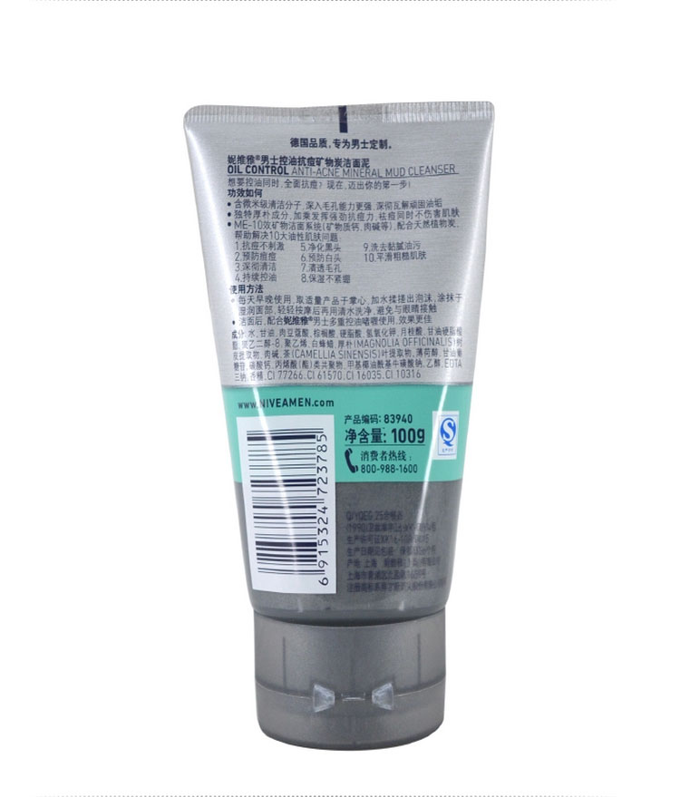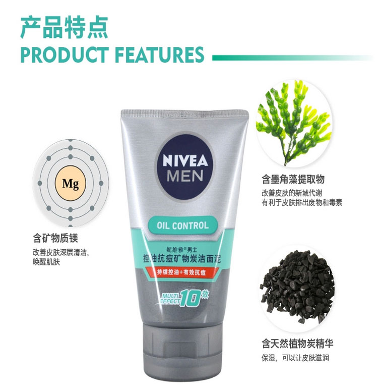 妮维雅男士洁面泥100g 洗面奶 控油抗痘洁面 深层清洁