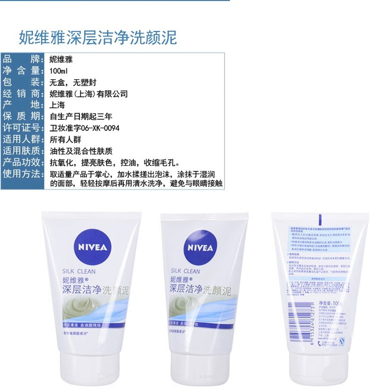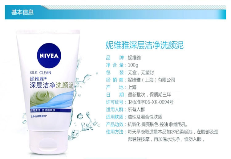 妮维雅女士洗面奶深层洁净洗颜泥洁面乳 深层清洁控油去黑头