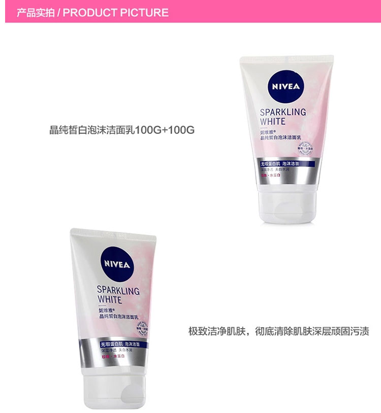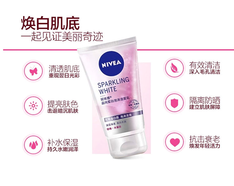 妮维雅女士洗面奶 晶纯皙白泡沫洁面乳美白保湿