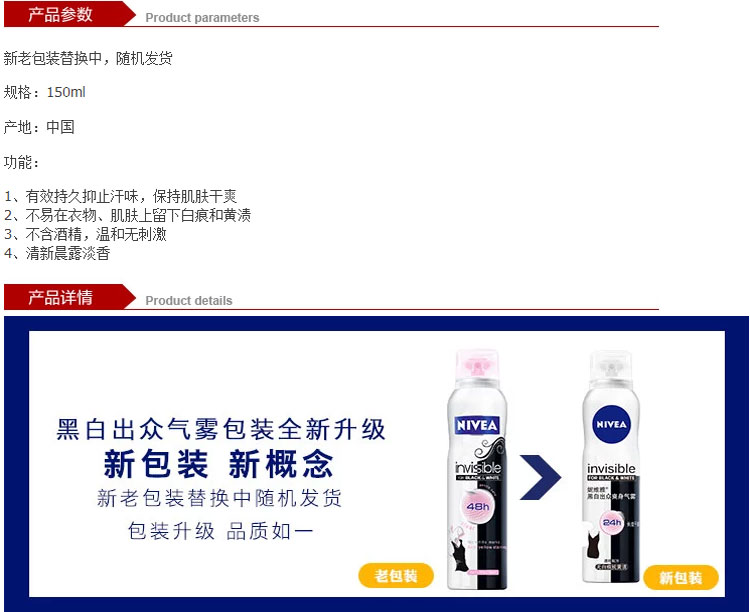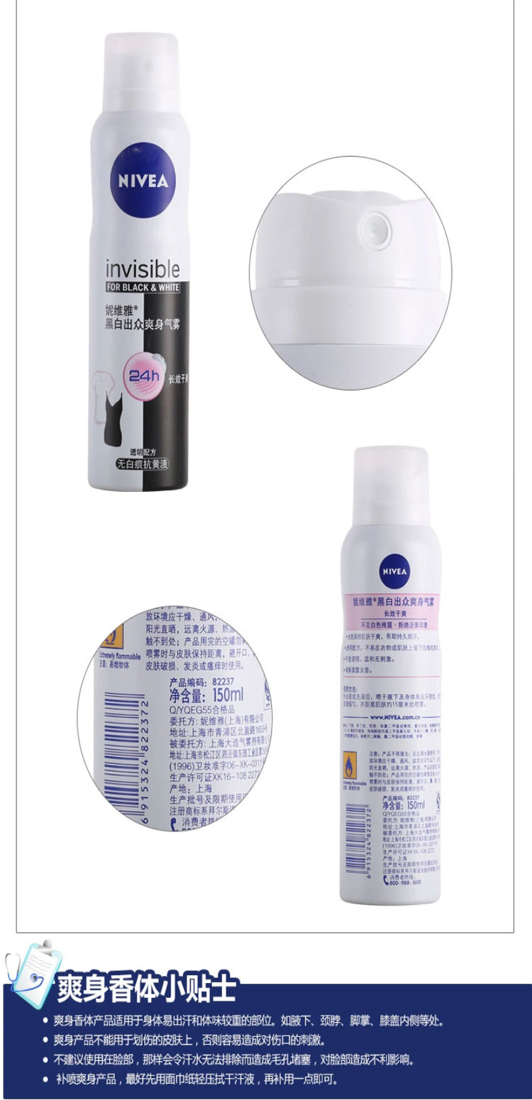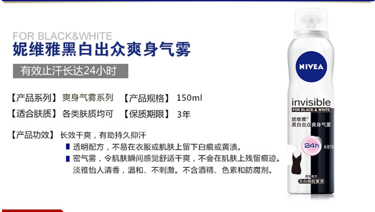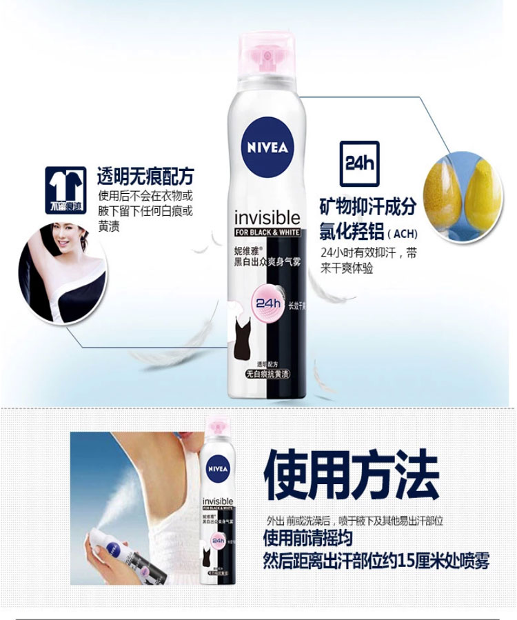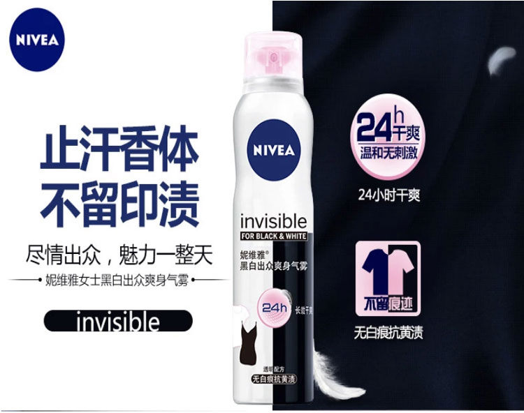 妮维雅 女士黑白出众爽身气雾150ml 腋下护理 持久干爽淡香氛