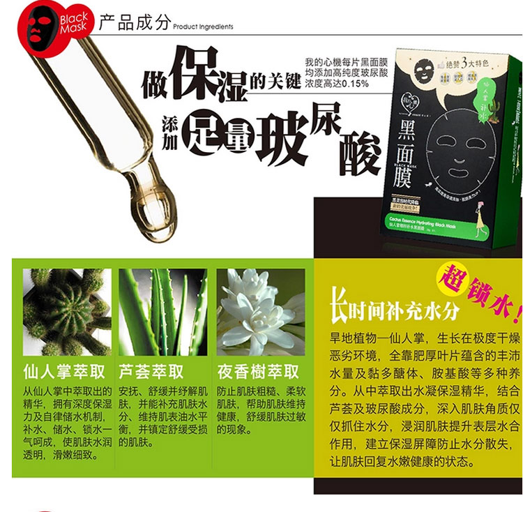 我的心机 仙人掌精粹补水竹炭黑面膜8片 补水急救面膜贴