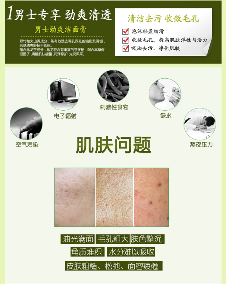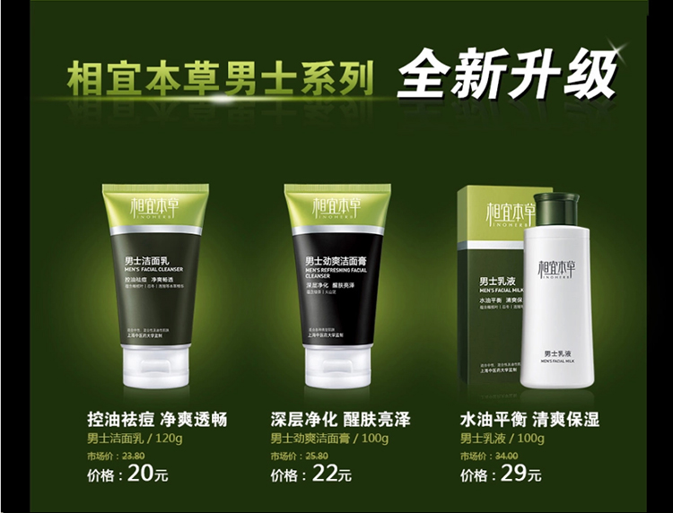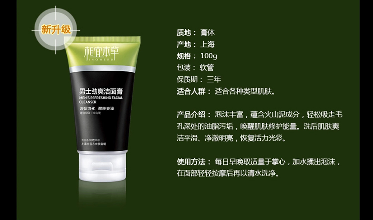 相宜本草 男士劲爽洁面膏 清爽控油 保湿洗面奶护肤品