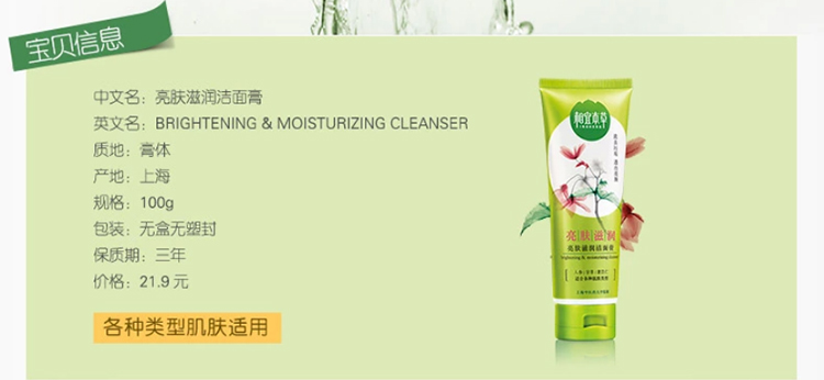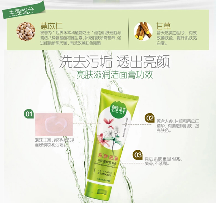 相宜本草美白亮肤滋润洁面膏100g 洗面奶补水美白