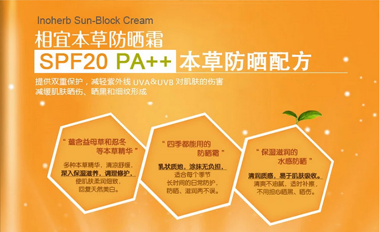 相宜本草防晒霜/乳SPF20 50g滋养防护 清爽美白隔离