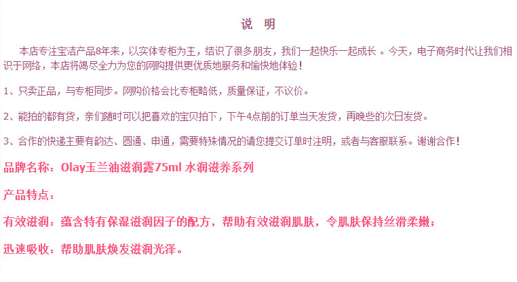 玉兰油滋润露75ml水润滋养乳液保湿补水美白润肤露霜
