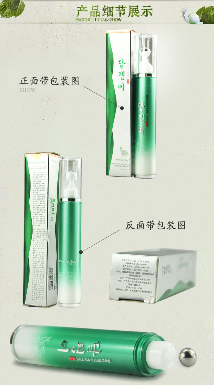 丹雪尼兰蜗牛修复眼霜20ml去黑眼圈眼袋抗皱滋润