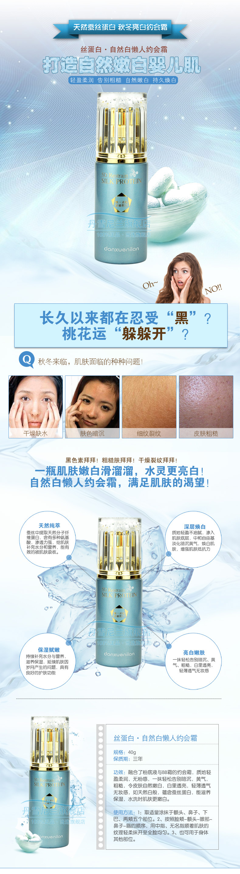 丹雪尼兰丝蛋白懒人约会霜40g 滋养补水保湿控油提亮肤色
