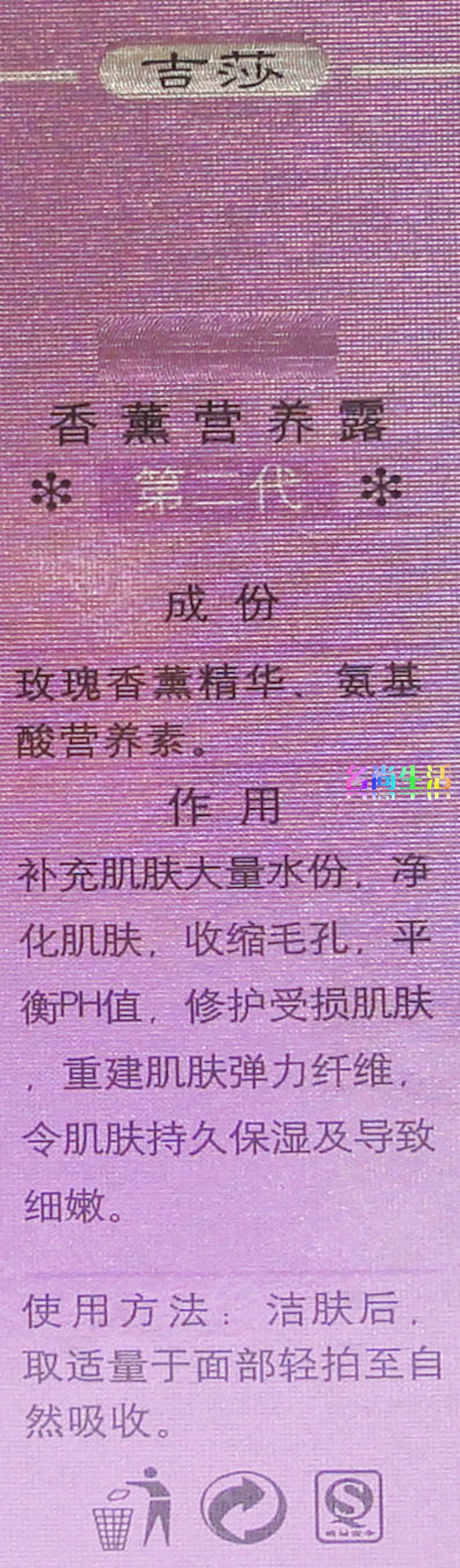 使用方法:洁肤后取适量于面部轻拍至自然吸收。