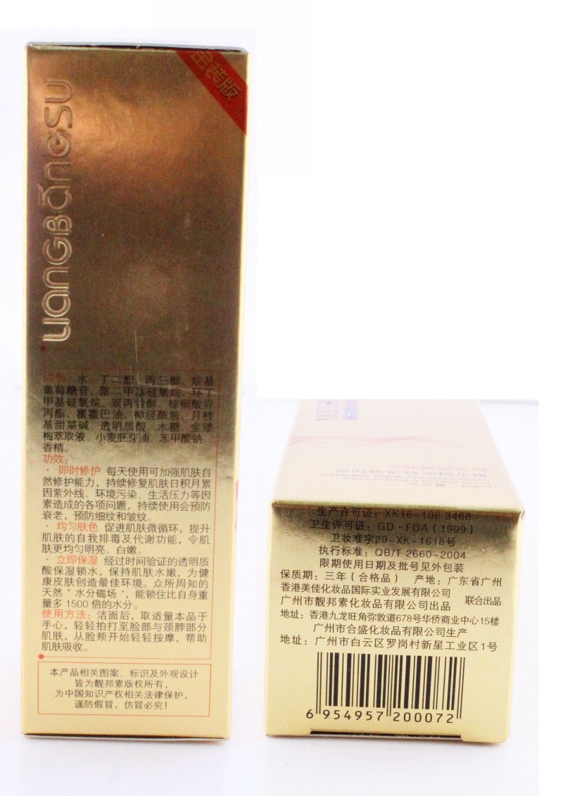 成份:水、丁二醇、丙三醇、烷基葡萄糖苷、聚二甲基硅氧烷、环丁甲基硅氧烷、双丙甘醇、棕榈酸异丙酯、霍霍巴油、神经酰胺、月桂基甜菜喊、透明质酸、木糖、金缕梅萃取液、小麦胚芽油、苯甲酸钠、香精。