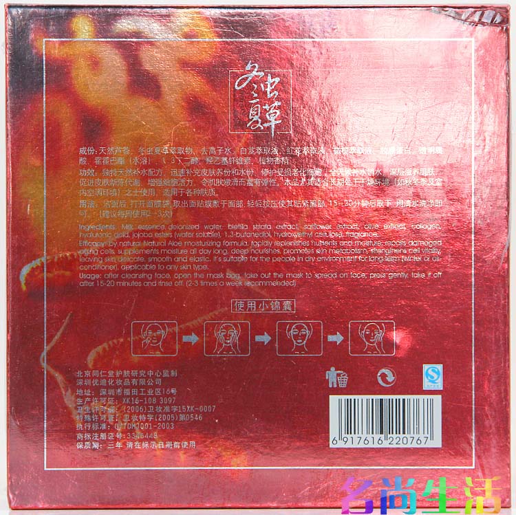 影 冬虫夏草 美白养颜补水面膜