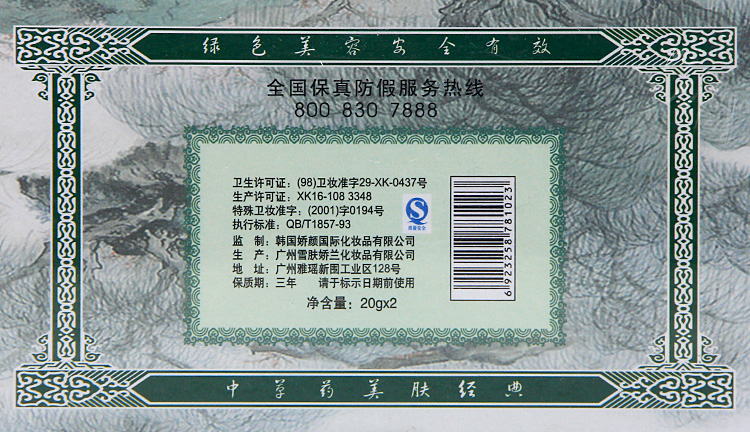 卫生许可证:(98)卫妆准字29-XK-0437号