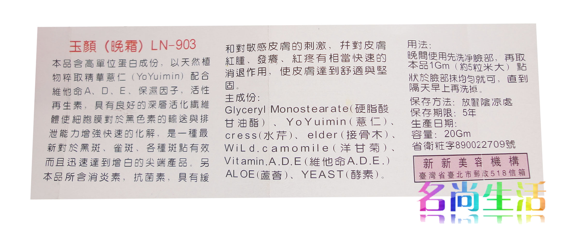 专柜正品台湾玉颜晚霜LD-903 祛斑、除皱 、保湿(20g)