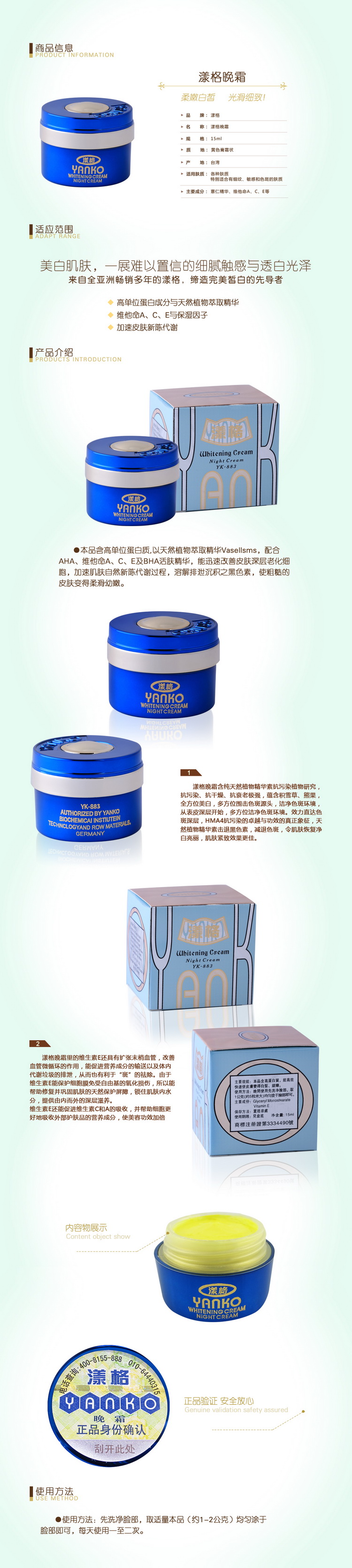 正品原装台湾 第三代 YANKO 漾格晚霜