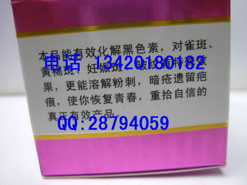 产品组成:日霜15G+晚霜15G美白日霜:长期使用能令肌肤白里透红,收缩毛孔,幼嫩皮肤,美白祛皱,防止黑斑再生祛斑晚霜:直接分解祛除已形成的黑斑、雀斑、蝴蝶斑、暗疮印、各种黑色素等珍珠霜:防止肌肤过早衰老,促进细胞再生,令肌肤红润嫩滑用法用量:美白日霜:洁肤后,取适量涂于面部轻柔按摩至完全吸收祛斑晚霜:每晚洁肤后,取适量涂于面部轻柔按摩打圈至完全吸收