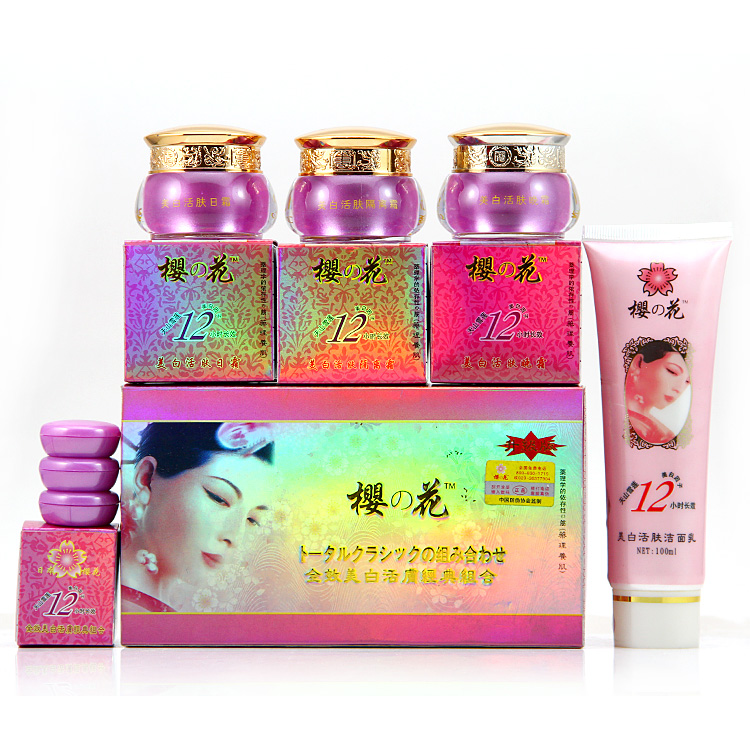 正品 樱花 白里透红(升级版)全效美白活肤经典组合配洗面奶