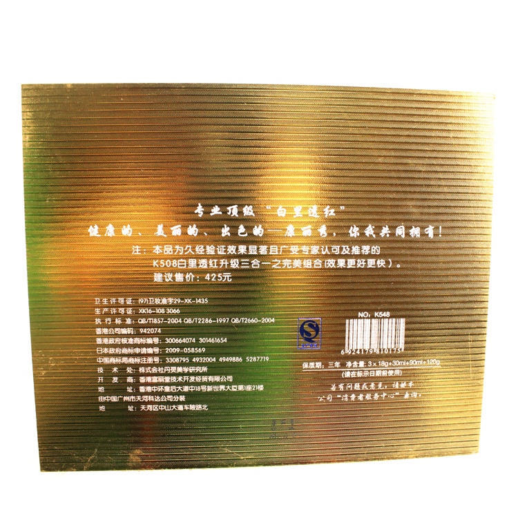 本白里透红升级系列在“实践出真知”的指导下,在其显着疗效受认可及广泛好评的基础上,受到国内外众多美容机构认证及多位资深专家广泛推荐。为了让顾客得到更理想的专业美容院效果,在原萃取天然百草精华的基础上,新包装添加了一些特效配方及元素,其针对性更强,效果更显着,更完美。同时适合预防敏感或皮肤极度缺水肤质,予您嫩白无暇,细致柔滑的肌肤,白里透红的健康肤色。长期使用效果更佳。是久经验证效果显着广受美之仕长期使用且广受专家认可及推荐的K508康丽秀白里透红升级三合一之升级完美组合。是专业美容院疗肤美容及尊尚护肤秘密珍品,被全球爱用着秘密珍传的护肤极品。